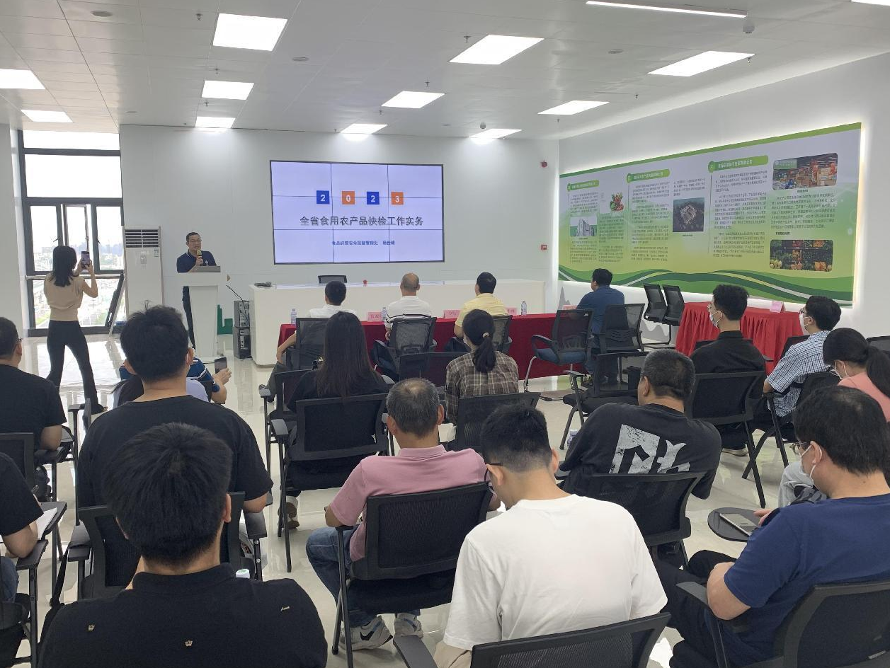 根據(jù)《2023年珠海市開展市場(chǎng)銷售食用農(nóng)產(chǎn)品快速檢測(cè)工作方案》有關(guān)要求,為提高食用農(nóng)產(chǎn)品快速檢測(cè)操作技術(shù)水平,推進(jìn)珠海市食用農(nóng)產(chǎn)品快檢工作的順利開展,珠海市市場(chǎng)監(jiān)督管理局于2023年5月18-19日在珠海市農(nóng)產(chǎn)品物流與安全檢測(cè)中心舉辦“珠海市2023 年食用農(nóng)產(chǎn)品快速檢測(cè)工作培訓(xùn)班”。珠海市市場(chǎng)監(jiān)督管理局分管領(lǐng)導(dǎo)、珠海市各區(qū)負(fù)責(zé)食用農(nóng)產(chǎn)品快檢工作的基層監(jiān)管人員、各區(qū)委托第三方檢驗(yàn)機(jī)構(gòu)派出人員,菜籃子配送平臺(tái)、農(nóng)貿(mào)市場(chǎng)及超市快檢人員、廣州瑞森生物科技股份有限公司相關(guān)領(lǐng)導(dǎo)及技術(shù)培訓(xùn)同事參與了本次培訓(xùn)班活動(dòng)。