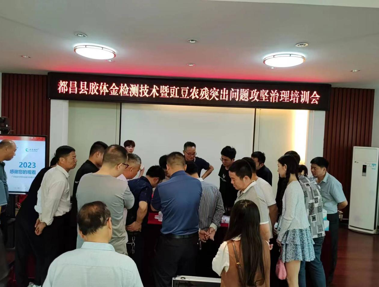 為確保全縣農產品質量安全,針對豇豆農殘突出問題進行攻堅治理,大力推進農產品質量安全監(jiān)管相關工作,江西省都昌縣農產品質量安全監(jiān)管站于2023年5月26日在縣農業(yè)農村局農業(yè)大樓7樓會議室舉辦“2023年都昌縣膠體金檢測技術暨豇豆農殘突出問題攻堅治理培訓會”。都昌縣各鄉(xiāng)鎮(zhèn)分管領導、各鄉(xiāng)鎮(zhèn)農產品質量安全專職監(jiān)管員及相關檢測站工作人員、廣州市瑞森生物科技股份有限公司相關領導及技術培訓同事參與了此次會議。