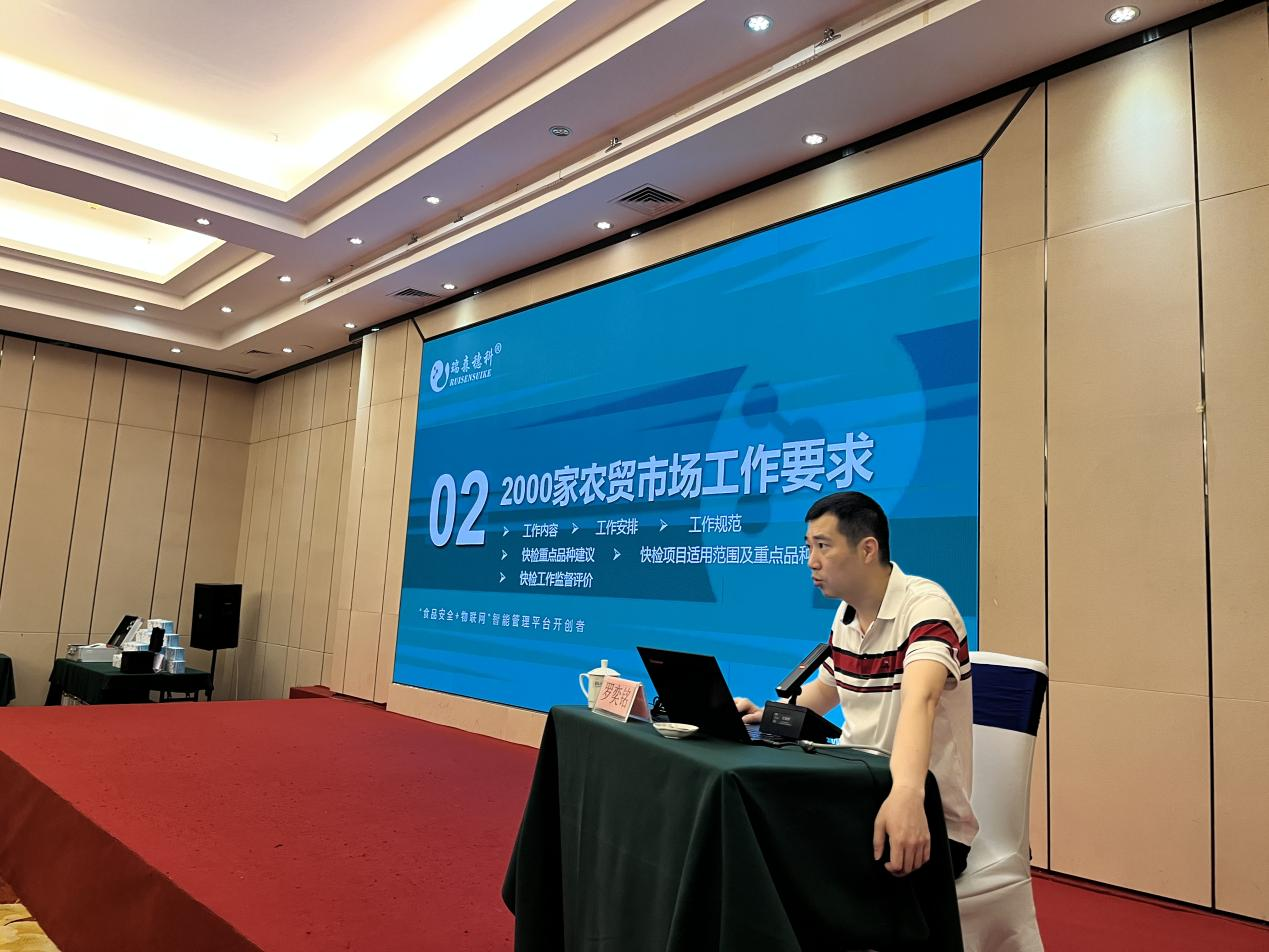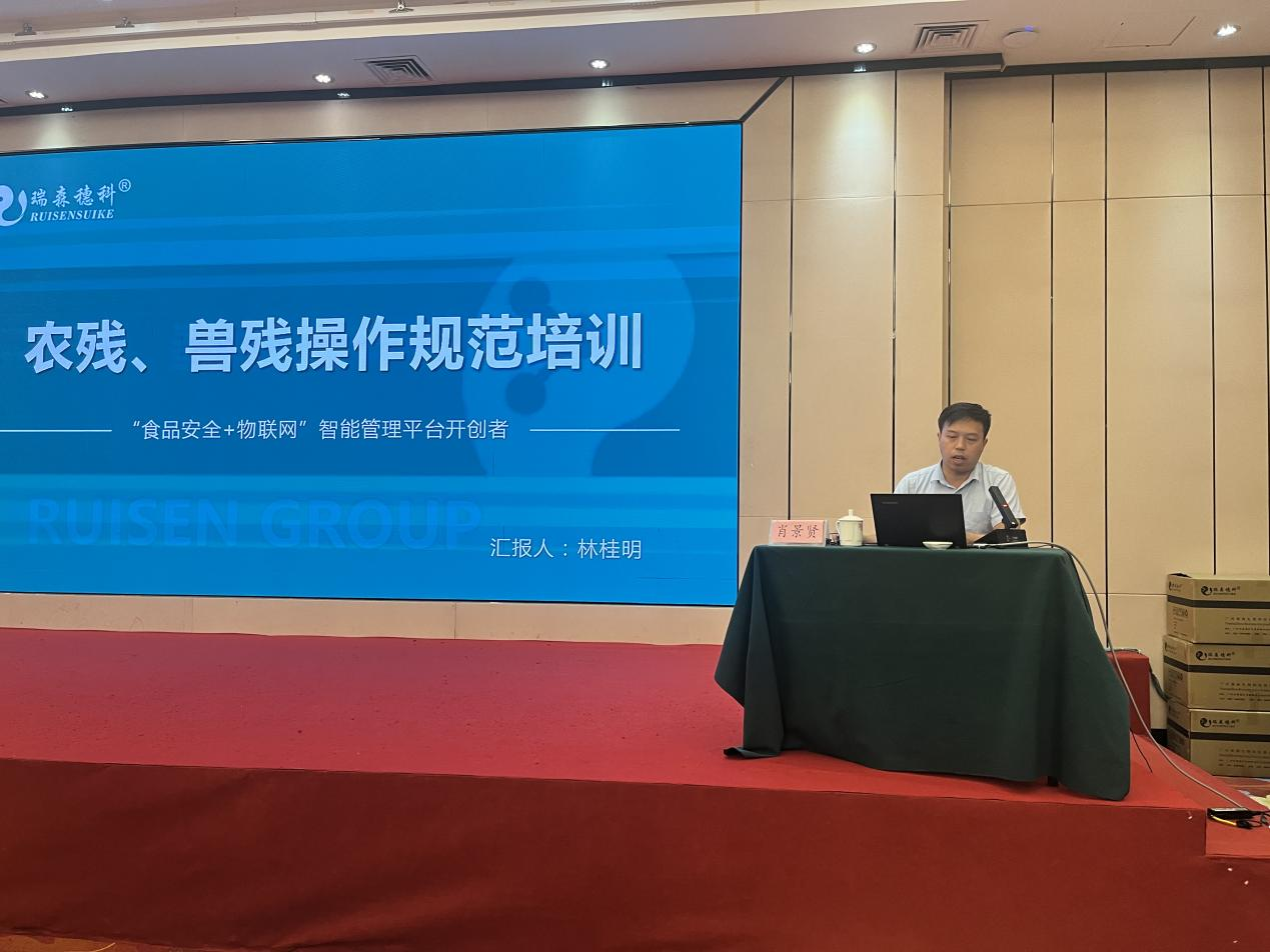 本次培訓班會議瑞森生物的培訓工作大致分為三個部分,一是食用農(nóng)產(chǎn)品快檢技術培訓理論授課講解,二是農(nóng)殘、獸殘操作規(guī)范培訓的理論授課講解,三是食用農(nóng)產(chǎn)品快檢技術的實操培訓。在食用農(nóng)產(chǎn)品快檢技術培訓理論講解課上,瑞森生物技術副總羅奕銘先生為與會人員講解了“快檢技術的應用”、“2000家農(nóng)貿(mào)市場工作要求文件解讀”、“快檢工作存在的問題”、“快檢考核的要點”等相關理論知識;在農(nóng)殘、獸殘操作規(guī)范培訓的理論授課上,瑞森生物技術經(jīng)理林桂明先生為與會人員講解了“農(nóng)殘酶抑制法及膠體金檢測技術”、“檢測的注意事項及規(guī)范操作”等相關理論知識。兩位同事的講課內(nèi)容深入淺出,受到了現(xiàn)場與會人員的一致好評,并取得良好效果。